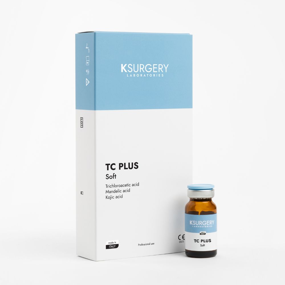 TC PLUS jest peelingiem przywracającym idealną fizjologiczną kondycję skóry, to nowoczesne urządzenie medyczne z linii K-surgery, zapewniające rewitalizację dermoepidermalną. To miejscowy środek medyczny o działaniu odmładzającym, oparty na kwasie trichloroacetylowym (TCA), stabilizowanym kwasami alfa-hydroksylowymi (AHA) – kwasem kojowym i mandelowym. Innowacyjna formuła w postaci żelu umożliwia stabilizację TCA dzięki obecności mocnych i słabych kwasów w formule, doskonale dozowanych i mieszanych w stosunku stechiometrycznym, co sprawia, że to leczenie jest stabilne, bezpieczne, skuteczne i nie pozostawia widocznych oznak po zabiegu. Zalecany w leczeniu zmian trądzikowych i dyschromii skórnej.